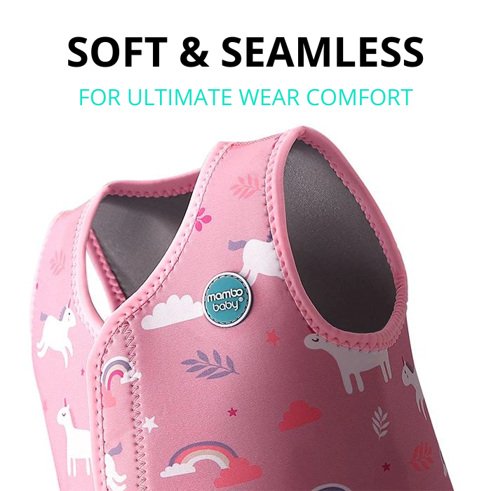 The thick neoprene layer fits perfectly to your little one’s body and helps retain their natural body temperature.